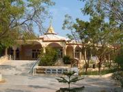 Dhamma Sindhu (“Ocean of Dhamma”) was established in 1991 on a quiet 14-hectare (35-acre) property very close to the Arabian Sea, near the village of Bada, 22 km west of the historic port city of Mandvi, in the Kutch region of Gujarat, India. The gardens are filled with peacocks and songbirds, and the sea breeze keeps the temperature moderate. The pagoda contains 188 cells. The main meditation hall can seat 300 people, and there are three smaller halls. The center has 145 single rooms with attached bath, with space for another 40 students in shared accommodation. The nearest major town, Bhuj, is approximately two hours away by car; bus or taxi service is available.